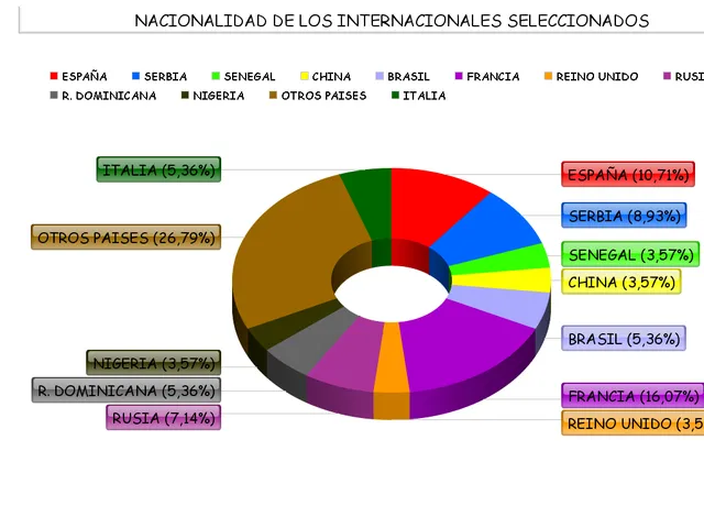 Comentábamos que sólo un 22% de los jugadores elegidos eran internacionales y hay que reseñar que los paises que más jugadores aportan son Francia en primer lugar y después España seguida de Serbia.
