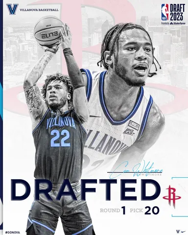 El jugador de Villanova, proyectado entre el 5 y el 8, cayó hasta el 20 y pone rumbo a Rockets. En los últimos días, había mucha incertidumbre en torno a su nombre y su elección. Pero llegar al veinte y tener como opción a Whitmore, la apuesta es clara, ir a por él, pese a posibles informes médicos o entrevistas irregulares. Puede ser el gran robo del Draft de 2023, promediando 12,5 puntos con los Wildcats, además de 5,3 rebotes.