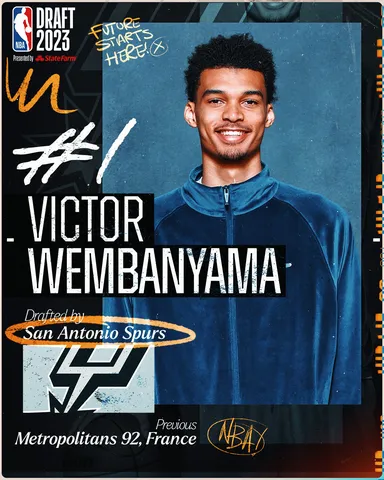 With the first pick in the 2023 NBA Draft, the San Antonio Spurs select Victor Wembanyama!@vicw_32 | #NBADraft | @Ticketmaster pic.twitter.com/vQqVmr9kk5