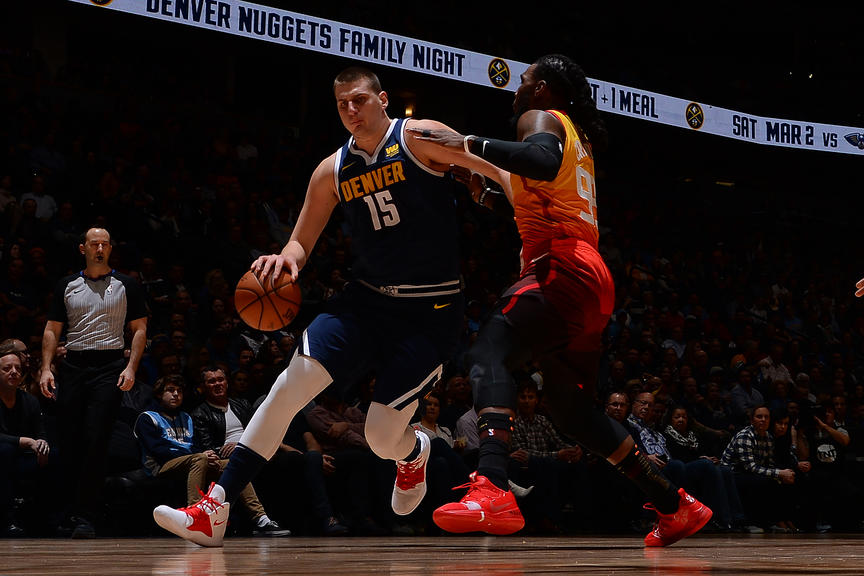 Jokic no es especialmente efectivo al finalizar situaciones de pick and roll, pues solo intenta 2.5 tiros por partido al continuar a canasta tras el bloqueo, pero es un maestro al aprovechar esas ventajas y generar juego tanto para los tiradores liberados como para dejarle la canasta en bandeja a su compañero interior. El esquema de los Nuggets se apoya en gran parte sobre el movimiento de los jugadores y los continuos cortes al aro, de manera similar al ataque de Golden State. Gary Harris y Jamal Murray están en el top 5 de la NBA en handoffs, es decir, situaciones en las que reciben el balón directamente de las manos de su compañero, y la ventaja que así generan la usan para atacar el aro.