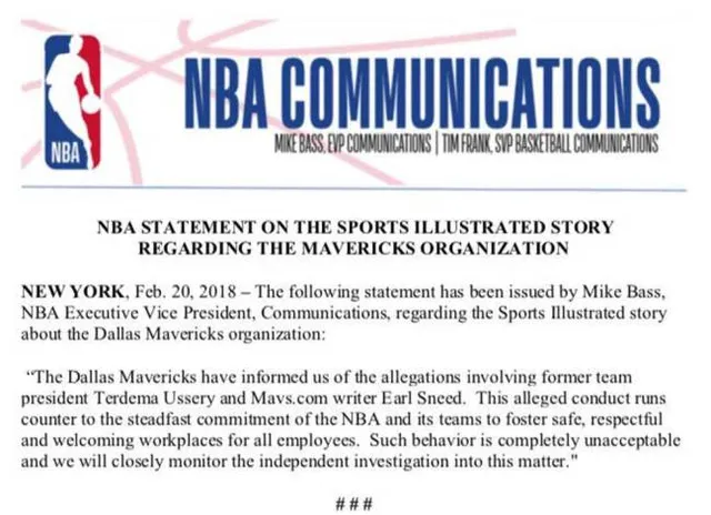 En una investigación publicada por Sports Illustrated, la franquicia de Mark Cuban se ha visto salpicada en una serie de escándalos, desde agresiones físicas machistas hasta abuso sexual. Varias mujeres, todas desde el anonimato, habrían denunciado que los Mavericks viven desde hace años con el acoso sexual normalizado dentro de las oficinas, desde el ex CEO y presidente, Terdema Ussery, hasta cargos directivos. Y con el conocimiento desde el despacho de recursos humanos.