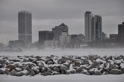 Que en Milwaukee los grajos deben volar a ras de tierra es algo que nadie duda. En Enero la temperatura media puede bajar por debajo de los cinco grados negativos. No en vano, es la segunda ciudad más fría entre las 50 más pobladas de Estados Unidos. Tiene el honor de liderar el ranking Saint Paul, urbe vecina de Minneapolis. La proximidad al lago Michigan le confiere un clima muy inestable durante la mitad más fría del año, caracterizado por cambios bruscos de temperatura, fuerte viento y tormentas de nieve.