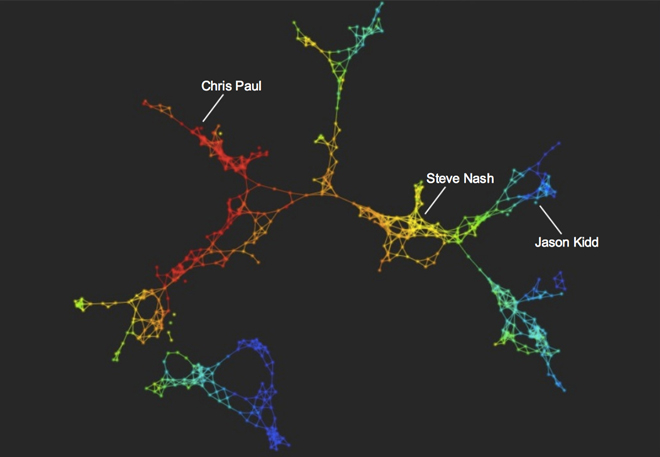 La empresa para la que trabaja utilizaba un análisis topológico de los datos para la investigación farmaceútica para prevenir errores y optimizar las perforaciones petrolíferas, es decir, un modelo matemático basado en las formas y los espacios. Tras obtener permiso de la empresa para aplicar dicha metodología y software a las estadísticas en baloncesto, rápidamente produjo diferentes patrones y códigos de color que le permitían determinar que existían en realidad más posiciones y que el éxito llegaba buscando la mezcla apropiada de los mismos.