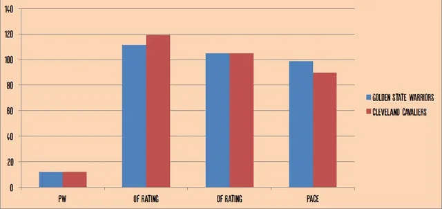 En cuanto al rating, tanto ofensivo como defensivo, volvemos a ver números tremendamente igualados. Ambos datos hacen referencia al numero de puntos (encajados o anotados) por cada 100 posesiones, siendo una de las estadísticas más importantes en el baloncesto actual. Los Cavs son levemente superiores a los Warriors en cuanto a puntos anotados, 119,2 por los 111,6 de los Warriors. Cabe decir, que entre ambos datos, se cuela otra vez Oklahoma. Pero en el Rating defensivo, el número es el mismo; 105,1. Aquí, son los Cavaliers, los que salen ganando.