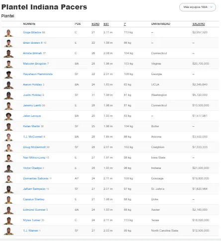 Tras su primera temporada como All-Star, Domantas Sabonis, hijo del mítico Arvydas, se presenta como el gran líder del equipo. Un jugador que no destaca por ser un grandísimo anotador, pero que domina cada una de las facetas del juego. Un reboteador tenaz, con buenos movimientos tanto en el poste bajo como en el alto, un tiro cada vez más fiable y una visión de juego poco habitual en hombres altos como él. Todo un todoterreno cuya mayor virtud es la inteligencia -lo que en la NBA denominan como IQ-. En su cuarta temporada en Indianápolis y solo con 24 años, el lituano es la piedra angular del proyecto y la gran esperanza de los fans de los Pacers. Terminó la campaña de 2019-2020 promediando 18’5 puntos, 12’4 rebotes y 5 asistencias en 34 minutos diputados.