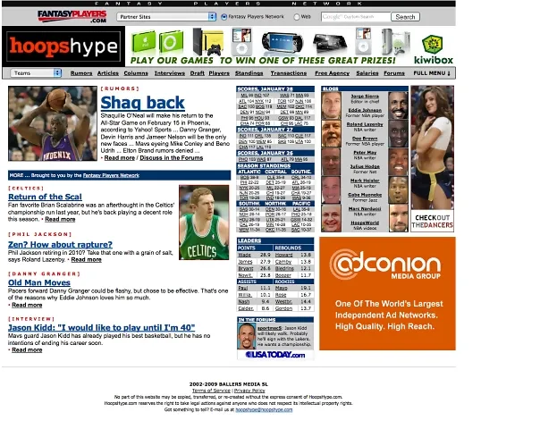 Evidentemente, lo que más éxito ha dado a HoopsHype, aunque represente sólo la cuarta parte del tráfico, es la página de Rumors. Creo que va a seguir siendo así, pero la tendencia es depender menos del contenido agregado y reforzar los contenidos exclusivos y de consulta. No hay forma de competir con Twitter en cuanto a inmediatez y es lógico que la gente se informe ahora algo más ahí y menos en las webs convencionales. Twitter es una amenaza, pero también es una ayuda para HoopsHype. Nos facilita cuestiones de trabajo a veces y además hemos integrado cosas de la red social en la web y con mucho éxito, como la página de Twitter Media.