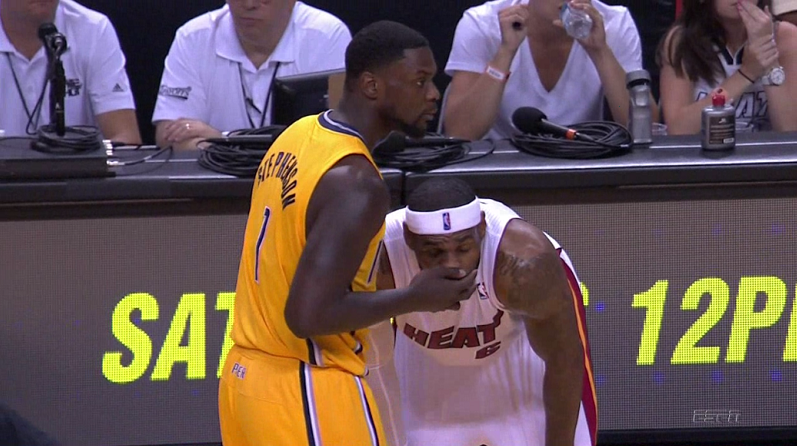 Entre detalles destacables en la primera parte, el duelo Lance Stephenson vs LeBron James. Saltaron chispas. El de Coney Island encimó una vez tras otra a la figura de los Heat, intentar sacarle del partido… pero sin éxito alguno. James, quién terminó mermado por las faltas en el quinto partido y con 7 puntos en total, puso la directa y con él los Heat. Dinamitaron el partido a su favor bien temprano para evitar sorpresas, con una labor coral fabulosa en todas sus líneas, tanto en ataque como en defensa. Y con el regreso de Chris Andersen, éstos ganaron intensidad defensiva.