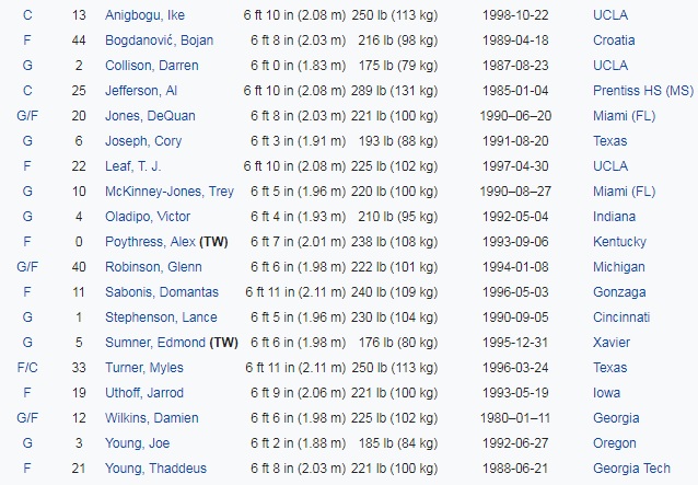 - Myles Turner. Sin George, el pívot formado en la Universidad de Texas será la piedra angular de estos Pacers y la base sobre la que reconstruir su futuro. Taponador, móvil, buena mano desde 4-5 metros y sin miedo a hundirla tenga quien tenga delante. El futuro de Myles es brillante y este año tendrá permiso para lanzar un volumen de tiros considerable, lo que le puede llevar a los 20 puntos fácil. Para que se hagan una idea, este año estuvo en 14,3 puntos por partido promediando 10 tiros de campo. Hagan cálculos contando que ya no están los tiros de George y los galones que va a coger. Prepárense para disfrutar de Turner.