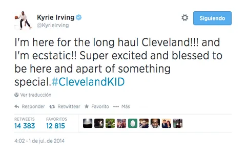Kyrie Irving se reunió recientemente en New Jersey con dirigentes de los Cavaliers, acompañados por David Blatt y Tyronn Lue, lugar en el que finiquitaron el acuerdo. Sin embargo, Irving no podrá firmar la extensión de contrato hasta el 10 de Julio. El propio jugador ha mostrado su felicidad vía Twitter tras el acuerdo entre ambas partes: