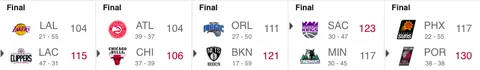 | 5 | L.A. Clippers | 47 | 31 |