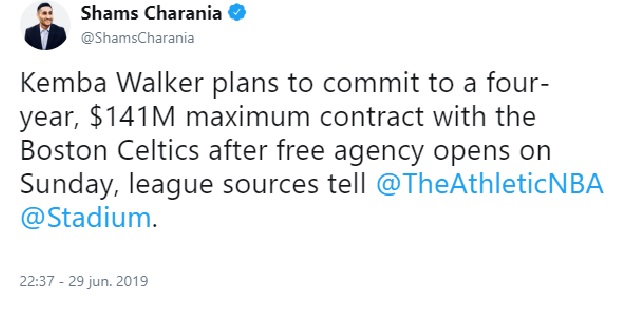 Finalmente, el reconocido periodista de ESPN, Adrian Wojnarowski afirmó el pasado jueves que los Boston Celtics se han posicionado como favoritos para contratar a Kemba Walker en la agencia libre, que abre sus puertas el domingo. Si el proceso sigue su rumbo, Kemba Walker será un celtic el domingo.