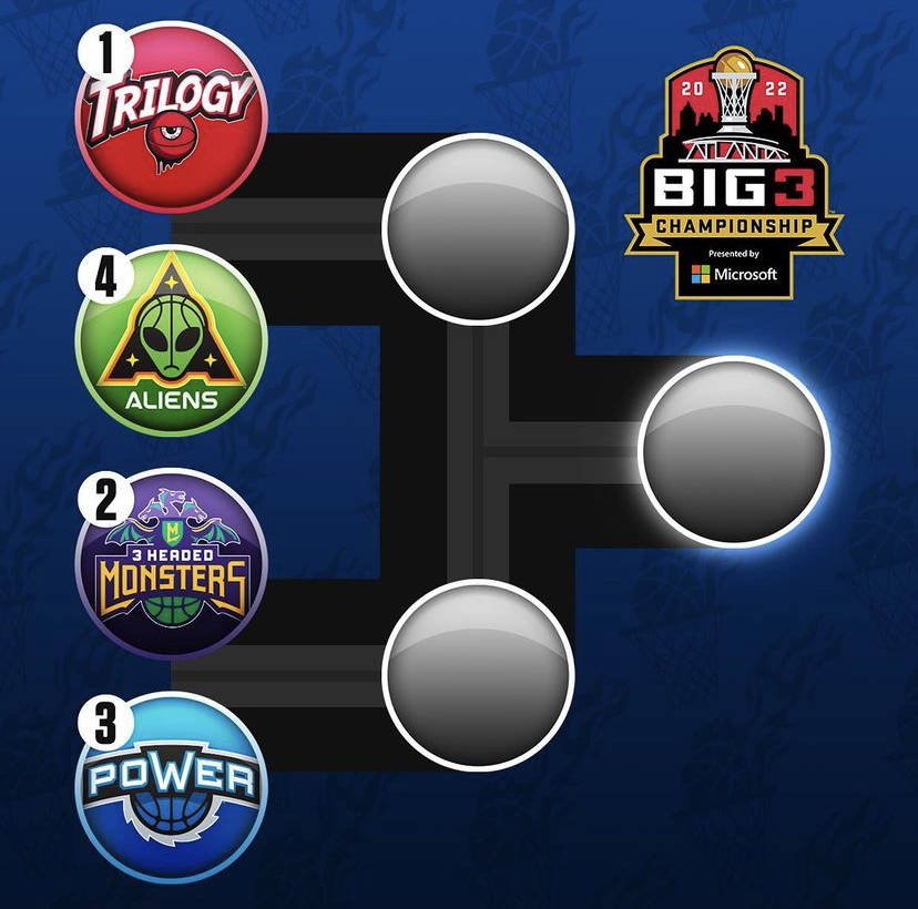 Los dos emparejamientos de semifinales serán Trilogy, los actuales campeones, contra Aliens, primeros y cuartos respectivamente. En el otro encuentro se podrá ver a 3 Headed Monsters ante Power, terceros y cuartos. Justo antes de la gran final en Georgia, se llevará a cabo el primer All-Star del Big3, compuestos por un representante de cada equipo que no esté en el partido de la final, con tres titulares y dos jugadores de banquillo.