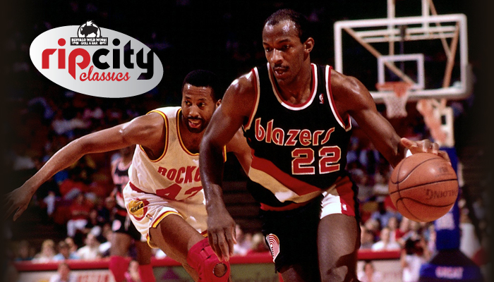 En 1983 llegaría, procedente de la Universidad de Houston, el jugador que cambiaría la historia de la franquicia, el escolta CLYDE DREXLER. Tuvo un impacto inmediato en la liga, pero esta megaestrella fue con el tiempo evolucionando como baloncestista hasta convertirse en un jugador total. Al principio de su carrera era un escolta espectacular, un saltarín muy elegante al estilo Dr. J, pero poco a poco fue mejorando su lanzamiento exterior, que ejecutaba con una suspensión muy heterodoxa (saltaba mucho y flexionaba las rodillas hacia atrás). Además, su aportación en los demás aspectos del juego fue creciendo con los años. Sus números lo dicen todo, fue 9 veces All-Star y promedió en sus 15 temporadas en la liga 20.4 puntos, 6.1 rebotes y 5.6 asistencias por partido.
