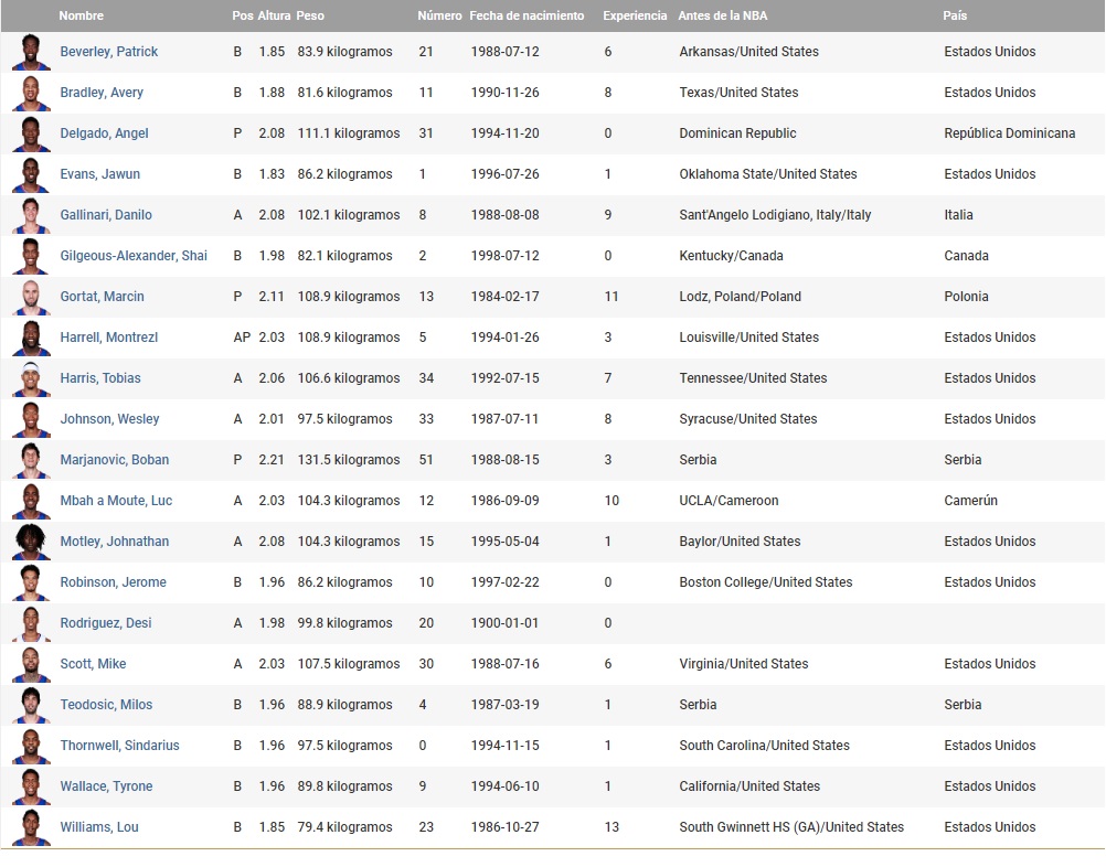 A pesar de la usencia de grandes nombres en este equipo, uno destaca por encima del resto. Por rendimiento la estrella de este equipo es Tobias Harris, quien ya jugó a un gran nivel al inicio de temporada en Detroit y luego en L.A tras ser incluido en el traspaso de Blake Griffin. No olvidemos que únicamente ha disputado 32 partidos con los Clippers, pero le han bastado para meterse a la afición en el bolsillo. Este año finaliza contrato, por lo que querrá ganarse firmar uno nuevo de mayor cantidad y hará un buen año. Sus estadísticas la temporada pasada: 19.3 pts, 6.0 reb y 41% acierto en triples.