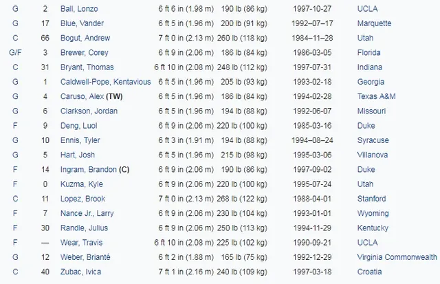 Presente – 2017/18. Ha habido muchos cambios en los Lakers, llegaron 'Magic' y Rob Pelinka para tomar decisiones en los despachos, y se eligió a Lonzo Ball con el número 2 del Draft 2017. Además, se ha conseguido colocar el contrato de Mozgov sacrificando a un D'Angelo Russell que no terminó de ser el líder que se esperaba. Han llegado Brook Lopez y Kentavious Caldwell-Pope, y se espera un impacto real (esta vez sí) de Brandon Ingram. Hay mimbres para dar guerra y demostrar que el proyecto crece.