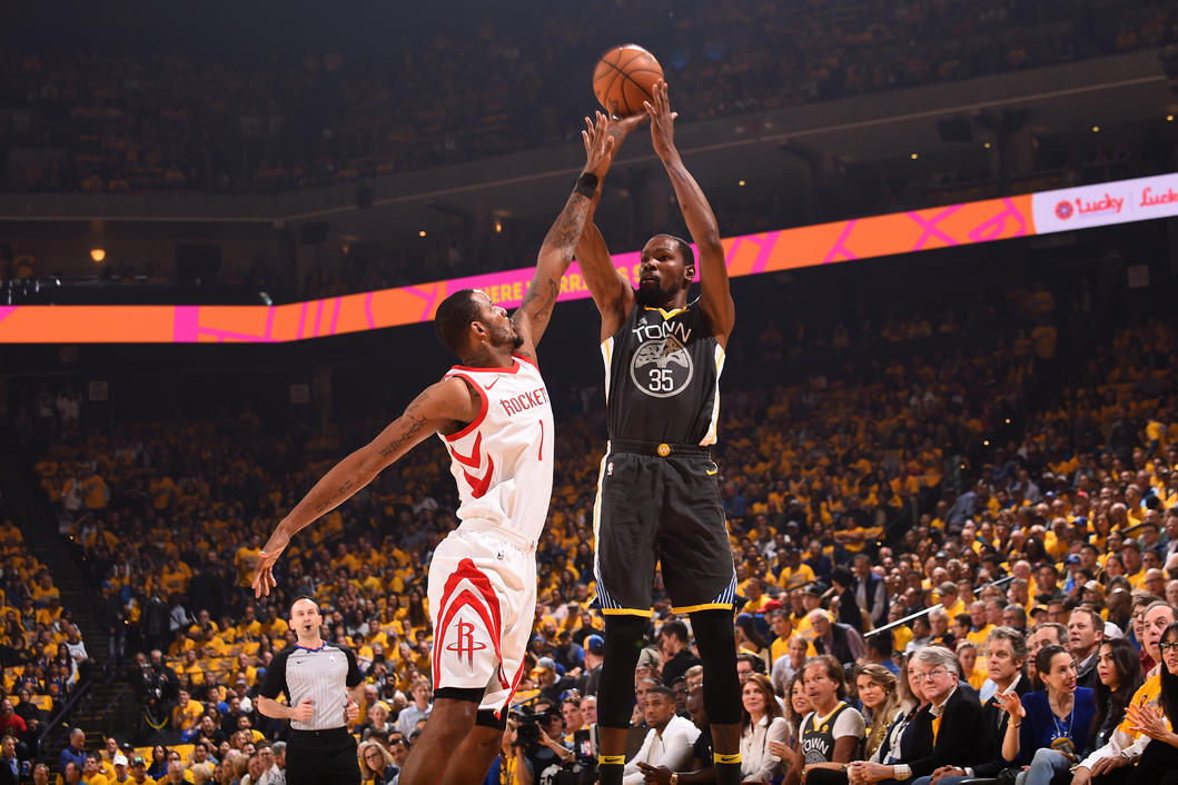 El partido se reanudó con unos magestuosos minutos de Kevin Durant, quíen con dos triples seguidos y su típica canasta de media distancia volvío a distanciar a los Warriors en el marcador. Durant está siendo el factor diferencial en esta serie con muchísima diferencia. La diferencia en el marcador tuvo idas y venidas pero nunca bajaba de los 8 puntos, hasta que Klay Thompson con sus triples abrió una brecha de 16. En ese instante los Rockets volvierón a pisar el acelerador, conscientes de que el partido se les escapaba y llegaron al cuarto decisivo con 75-82.