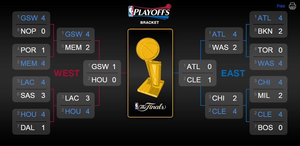 Empezaron las Finales de la Conferencia Este en el Philips Arena de Atlanta. Cleveland Cavaliers, con la baja de Kevin Love y las permanentes lesiones de Kyrie Irving, aunque sigue jugando, se enfrentaba a uno de los mejores equipos del año, con el mejor balance del Este y con un juego capaz de ganar a cualquiera. Los Hawks de Budenholzer no fueron capaces de hacer valer el factor cancha y cayeron derrotados a las primeras de cambio.