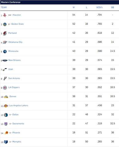 Minnesota, San Antonio y Nueva Orleans están notando las bajas de sus estrellas, pero de momento se mantienen dentro de los puestos de playoffs. La baja de Butler ha hecho daño a los Wolves, pero con el paso de los partidos han sabido rehacerse y de la mano de Towns han conseguido recuperarse. Deberán asegurar los partidos que les quedan contra equipos perdedores, pero se jugarán la clasificación en sus duelos directos contra Nuggets, Clippers, Jazz y Spurs.