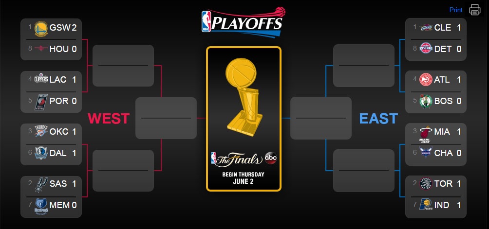 Alarma en Golden State Warriors. Stephen Curry que salió tocado del primer partido de la serie por una torceruda de tobillo, no jugó en la noche de ayer y es duda para el siguiente partido de la serie. Aún así, sin Curry, estos Warriors son un equipazo y no tuvieron problema en ganar a los Rockets por segunda vez consecutiva en los playoffs, a pesar de que éstos últimos mejoraron la imagen del primer partido, gracias, en parte, a la buena actuación, esta vez sí, de James Harden (28 puntos y 11 asistencias), pero que aún así, no fue suficiente.