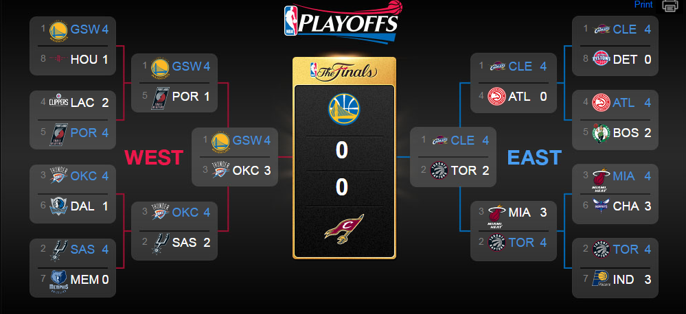Una falta personal, clara de Ibaka, daba a Curry, que acabó con 35 puntos, 5 rebotes y 8 asistencias, tres tiros libres que acabó metiendo para decidir el partido y las series. Falló Durant (27 puntos y 7 rebotes) dos tiros seguidos y Golden State cerró la remontada con un triple del MVP. Los de la Bahía vuelven a la final para medirse otra ves a los Cleveland Cavaliers de LeBron James. Los chicos de Akron volverán a verse las caras.