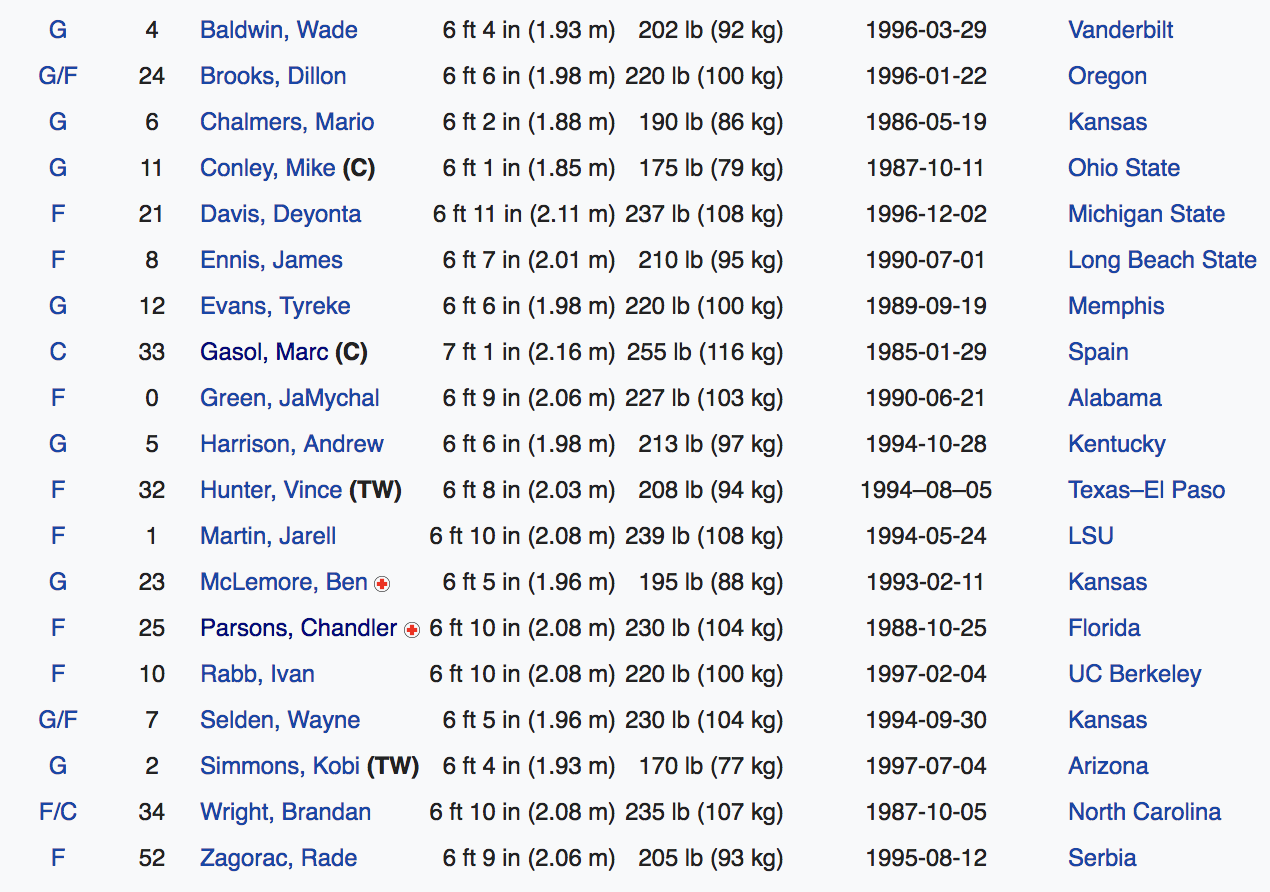 - Chandler Parsons. Salió de Houston y se acabó el Parsons que conocíamos. El año pasado promedió 5'9 puntos y 2'5 rebotes, un tercio de los números que nos regaló en Texas. Si estos Grizzlies se meten en playoffs, depende y mucho del rendimiento de Parsons. Si sus rodillas lo permiten, claro.