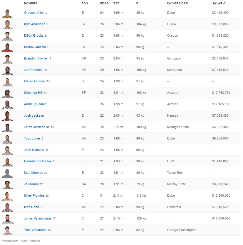 Tras una temporada que arrancaron de manera muy sólida, para posteriormente acabar desinflándose, desmantelar el proyecto e ir directos al Draft, los Memphis Grizzlies arrancaron el verano con diversas caras nuevas, como Grayson Allen, quien aterriza en el traspaso de Conley, o Josh Jackson, regalado desde los Phoenix Suns. Veteranos como Jae Crowder o Solomon Hill serán fundamentales como eje de la maquinaria joven, quien no parece que contarán como compañero y mentor a Andre Iguodala, quien obtuvo permiso para no disputar el Training Camp de los Grizzlies, y quien tiene pie y medio fuera de la franquicia.