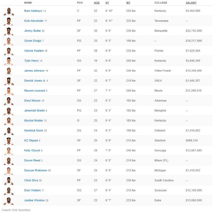 Tras una temporada sin pena ni gloria, que fue más un espectáculo de despedida de Dwyane Wade, los Heat no lograron su objetivo de clasificarse para los Playoffs. Aun así, han confeccionado un quinteto al que le faltan recursos desde la segunda unidad, pese a que, a priori, pudiera ser suficiente para hacerse con una de las ocho primeras plazas de la conferencia.