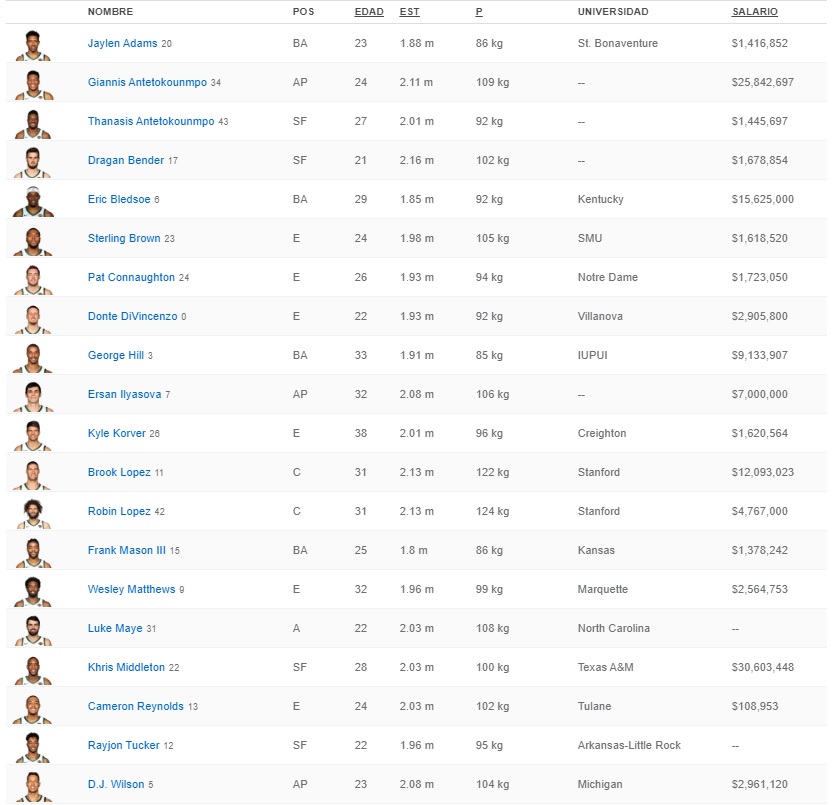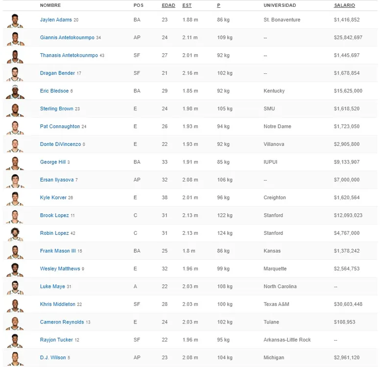 Sorprendentemente, el griego no es el jugador con mayor salario de la temporada 2019/20. El contratazo firmado por Khris Middleton, segunda espada de Antetokounmpo, le ha llevado a ser el jugador mejor pagado de la plantilla. Con 30.603.448 millones de dólares, el alero de los Bucks debe mantener la regularidad y progresión que lleva desde la pasada temporada, siendo uno de los pilares del éxito de los de Wisconsin.