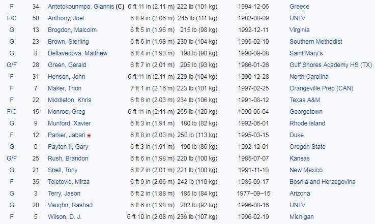 - Malcom Brogdon. Brogdon acabó la temporada como titular en Milwaukee y se hizo con el premio a Rookie del Año en la NBA. Esta temporada deberá demostrar que es capaz de llevar su juego adelante y organizar a un equipo plagado de jóvenes. Con Kidd como entrenador seguro que no le cuesta. Sus números de 10-3-4-1 deberán mejorar si quiere seguir asentándose en la mejor liga del mundo.