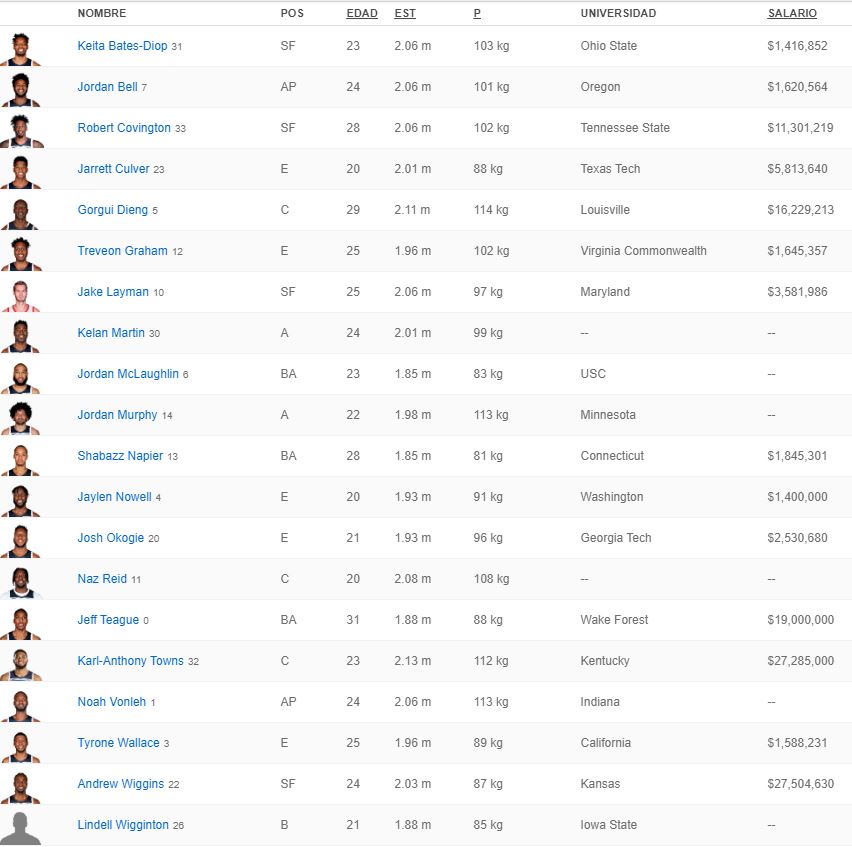 Wiggins (27 millones y medio esta temporada, acaba en 2023), Towns (27 millones, acaba en 2024) y Teague (19, acaba en 2020) son los contratos más elevados del equipo del norte de Estados Unidos. Sin embargo, a la plantilla le falta un retoque y un poco más de confianza para creer que pueden pelear por la postemporada en el durísimo Oeste.