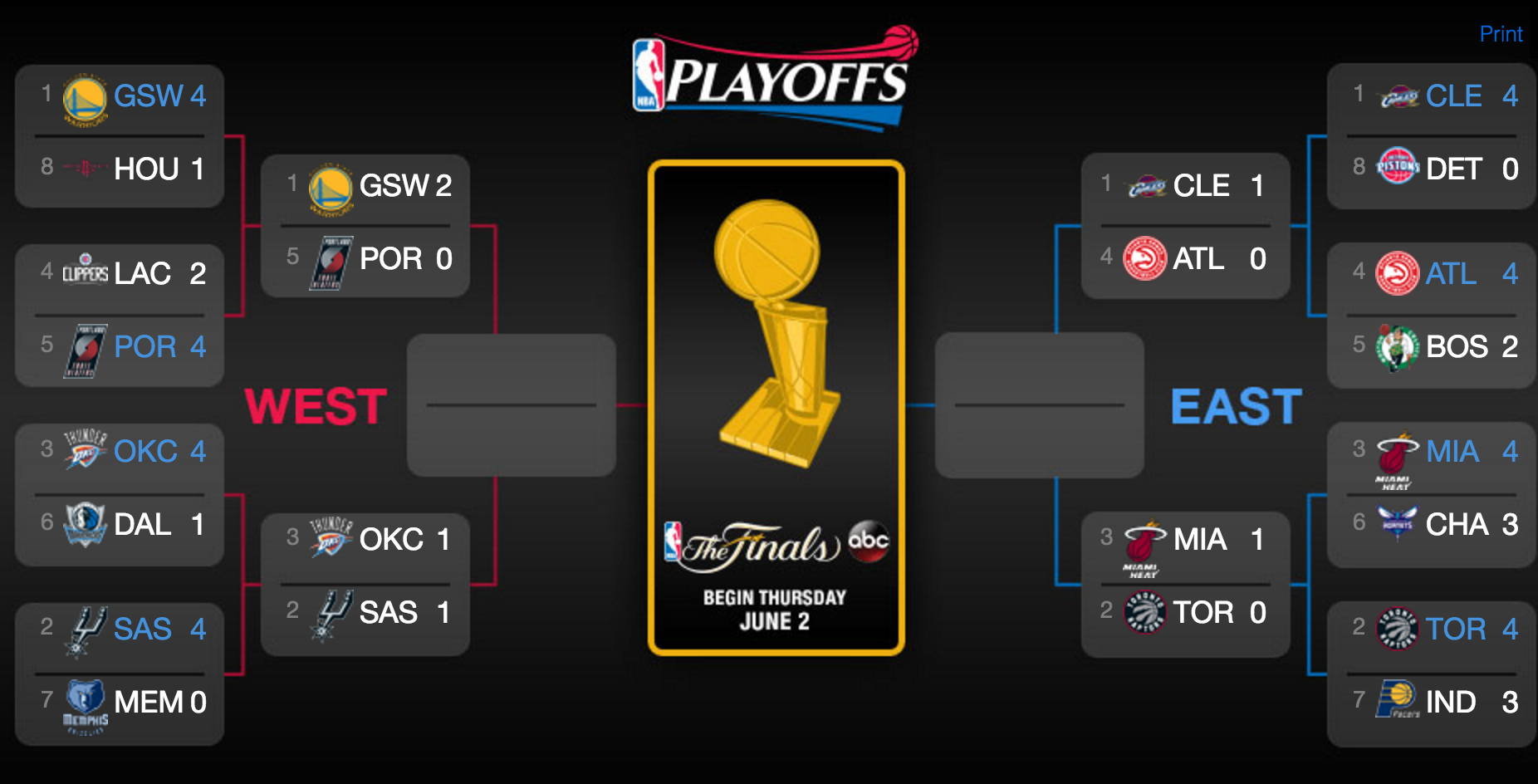 Los Heat toman el Air Canada Centre y roba el factor cancha a unos Raptors que siguen en esa montaña rusa que están siendo sus Playoffs. Los locales empezaron el partido muy centrados, con Jonas Valanciunas haciendo estragos en la pintura anotando 10 puntos en el primer cuarto, aprovechándose de una mala caída de Whiteside que le mantuvo en el banquillo durante el primer cuarto. Si bien ya en el segundo cuarto, la relajación defensiva y el desacierto de Kyle Lowry, que estuvo horrible una vez más con 9 puntos, 3/13 en tiros y 1/7 en triples (¡aunque qué triple!), permitieron a los Heat engancharse al encuentro gracias al backourt Wade-Dragic. El esloveno ha alcanzado su mejor momento de la temporada durante estos Playoffs y anoche fue una vez más el líder ofensivo de su equipo con 26 puntos y 6 rebotes, mientras que Wade volvió a estar pletórico y acabó con 24 puntos, 6 rebotes y 4 asistencias, convirtiéndose además en el 16º anotador en la historia de los Playoffs.