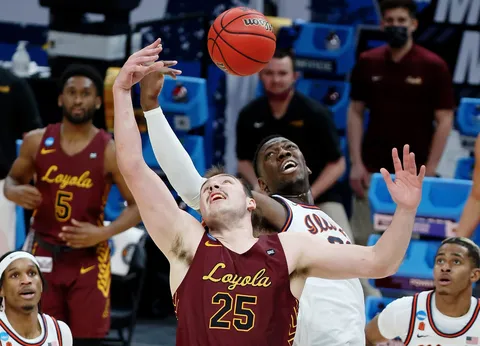 Ya en el primer encuentro de la región saltaba la gran sorpresa ya que una magnífica Loyola-Chicago con su juego coral, logró bajar el ritmo de juego de Illinois y llevarlos a su territorio y, de la mano de un espléndido Cameron Krutwig (19 puntos, 12 rebotes, 5 asistencias y 4 robos), lograban imponerse a su rival estatal y lograr su acceso al Sweet 16, con un marcador de 71-58.