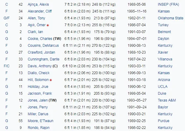 | Ala-pívot | Anthony Davis | 23 |