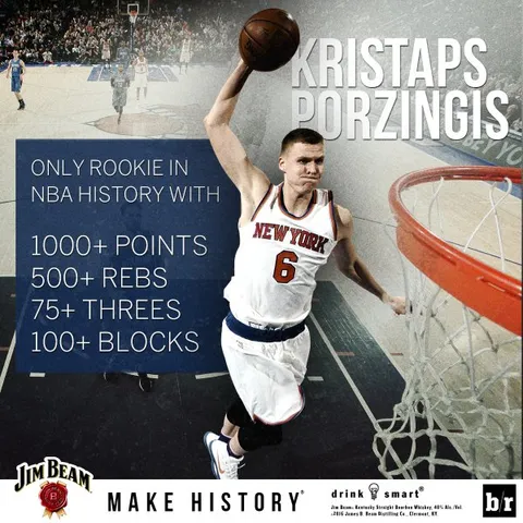 Kristaps Porzingis, único rookie de la historia en conseguir 1000+ puntos, 500+ rebotes, 75+ triples y 100+ tapones