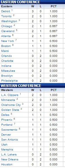 Minnesota ha comenzado como hacía años que no lo hacía, y es que la victoria contundente ante Denver Nuggets (78-95) les deja en un balance de 2-0. Karl Anthony-Towns fue el héroe con 28 puntos y 14 rebotes en su segundo doble-doble consecutivo. El número 1 del draft dominó la zona con gran superioridad, a la vez que lo acompañaban Andrew Wiggins con 18 puntos y Ricky Rubio con 12 tantos y 8 asistencias. La triste noticia de Flip Saunders tiene al equipo con una motivación extra.