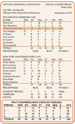 Además, en Philadelphia se celebró el 60 aniversario del juego de los 100 puntos de Wilt Chamberlain un 2 de marzo de 1962 en el Hershey Sports Arena con un resultado de Philadelphia Warriors 169-147 Knicks. Chamberlain anotó 36 de 63 en tiros de campo y 28 de 32 en tiros libres. Los miembros de la familia de Wilt ayudaron a tocar la campana antes del partido.