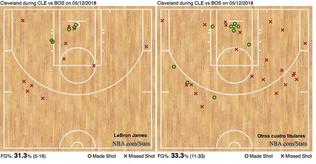 Los cuadros de tiro de LeBron y sus compañeros en el quinteto titular: