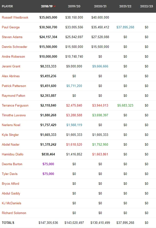 Los Thunder tienen la segunda plantilla más cara de la NBA y el propietario va a tener que dejarse muchos millones en un proyecto que no parecese suficiente como para ganar el anillo.