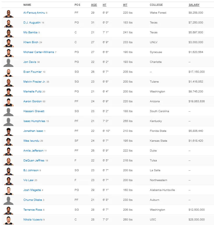 El mantenimiento y la renovación de Nikola Vucevic se clasifica como el gasto más grande del equipo con $28M. Será uno de los trabajos financieros a dejar con constancia, ya que durante las dos siguientes temporadas, el jugador recibirá 26$Mill (2021) y $24M (2022) respectivamente. Aaron Gordon ($19,8M) y Evan Fournier ($17M) son los que continúan la estela como miembros de la plantilla de mayor valor. El único jugador del que se han desecho finalmente ha sido Timofey Mozgov, un ancla profundo que costaba mantener. Pero Shaquille Harrison, Walter Lemon Jr., Antonio Blakeney son también algunos de los nombres de renunciados a la plantilla.