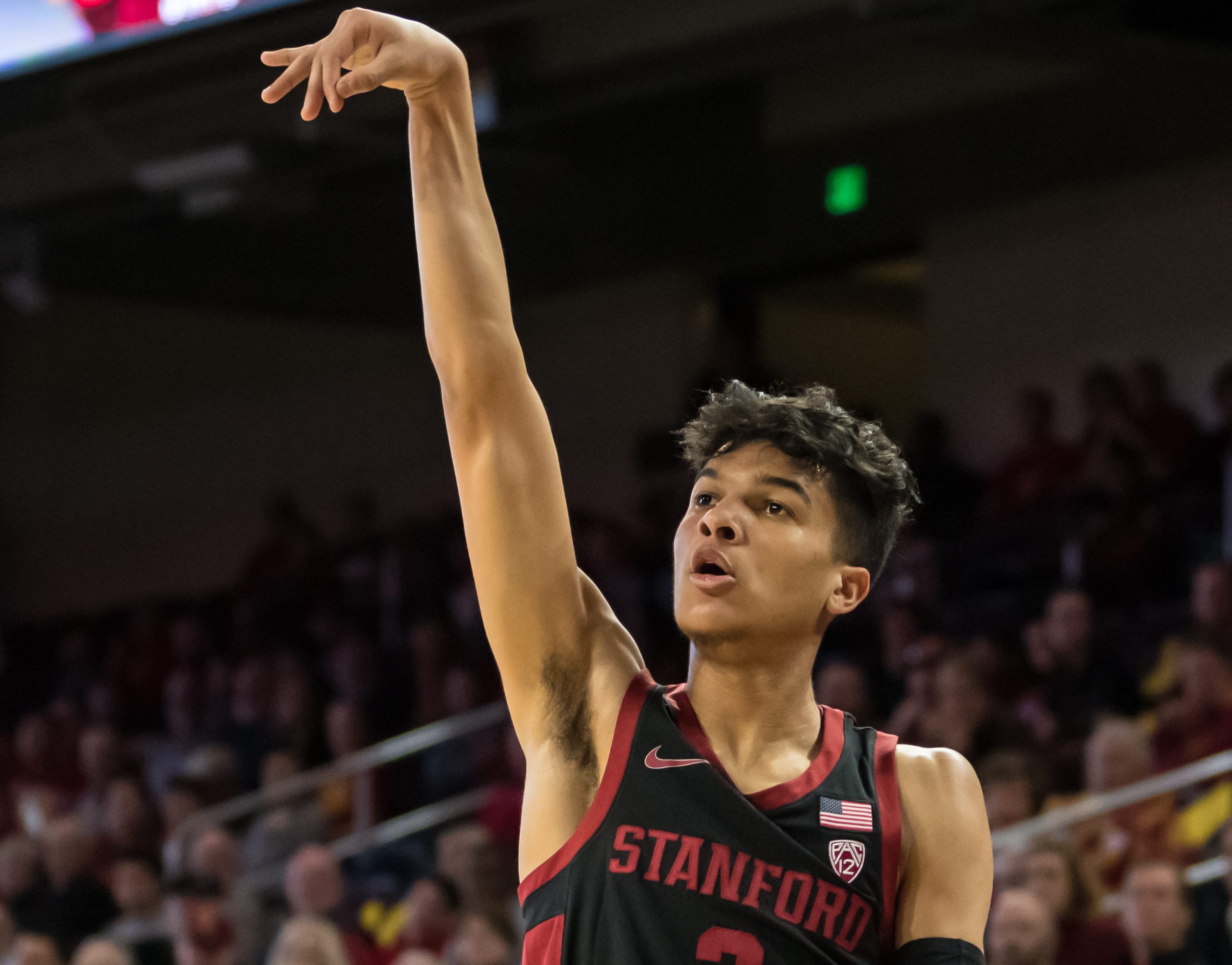 Su rango es muy variable, ha metido muchos tiros lejanos en la NCAA a lo largo de la temporada, es algo que va a poder trasladar a la NBA sin mucho problema.