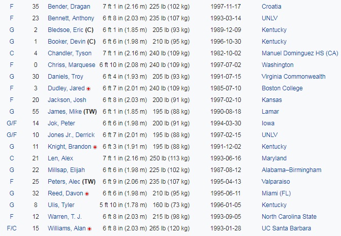 - Tyler Ulis. En una franquicia que vive aferrada al progreso de los jóvenes, una buena apuesta sería la del menudo base formado en Kentucky. Nos gustó en el final de curso y tendrá que pelearse con el ex–Baskonia Mike James, todo potencia. Si se lesiona Bledsoe se nos antoja una interesante lucha por los minutos.