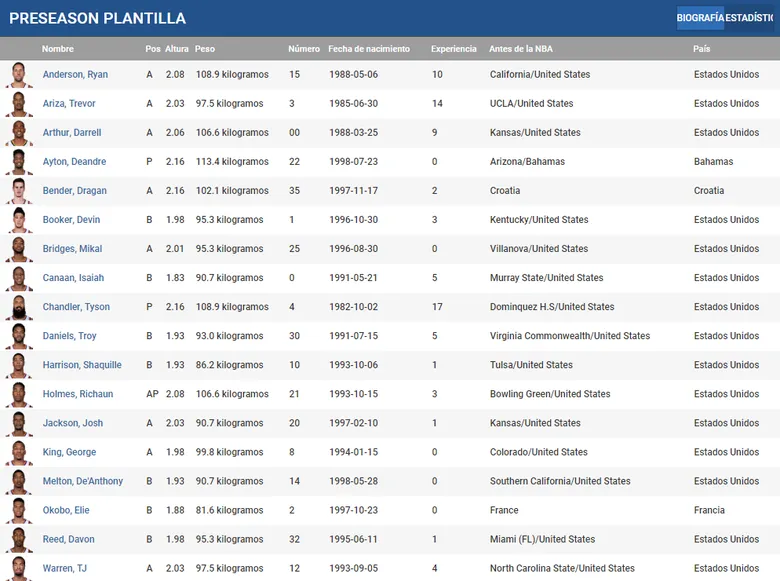 Este año debe ser la temporada de consagración de Devin Booker. Desde su año rookie no ha hecho más que progresar pero este es el primer año en el que su equipo tiene opciones de competir de verdad debido a las mejoras de su plantilla. Aún así al jugador le costará encontrar el ritmo debido a que se le ha detectado una lesión de ligamentos en la mano y ha tenido que pasar por quirófano. Es muy posible que se pierda las primeras semanas de competición, por lo que DeAndre Ayton y Josh Jackson deberían ocupar su rol como estrellas del equipo. Los números de Booker la temporada pasada fueron de 24’9 puntos, 4’5 rebotes y 4’7 asistencias.