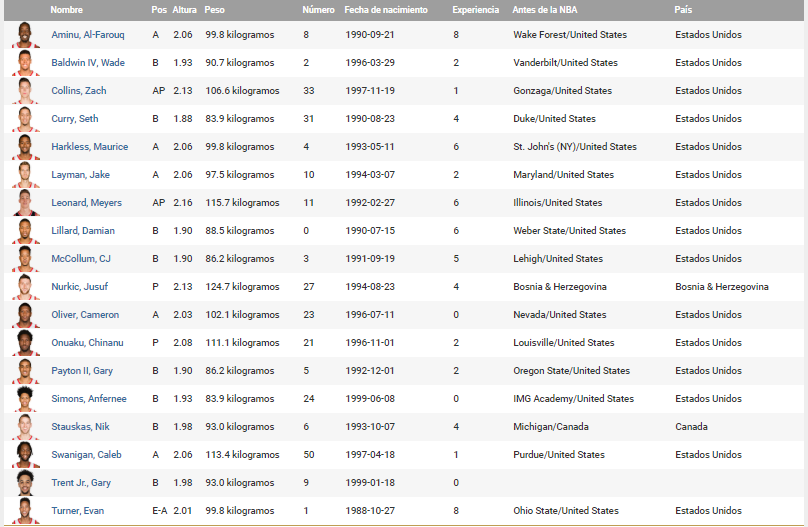 - Plantilla limitada y poco profunda. Más allá del trío Lillard-McCollum-Nurkic, pocos son los hombres que pueden garantizar un rendimiento notable en Portland. Jugadores como Evan Turner (el año pasado registró, con 8.2 puntos, su peor marca anotadora desde su temporada rookie) o Meyers Leonard, este último con un contrato muy por encima de su valor real, se han quedado a medio camino en sus aspiraciones, mientras que Zach Collins está aún en fase beta. El repertorio de aleros móviles y versátiles (Aminu, Harkless) encaja en el estilo del equipo, pero se echan en falta más quilates de calidad pura en la franquicia.