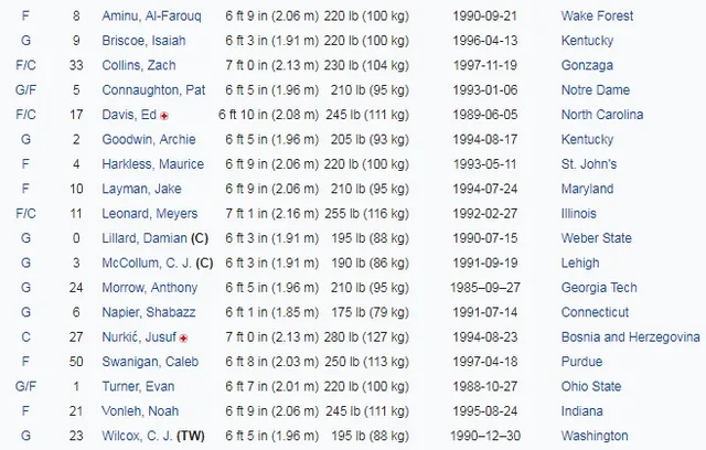 - C.J. McCollum. El mejor socio que puede tener Lillard a su lado evoluciona con el paso de las temporadas. Convertido ya en una de los mejores escoltas de la liga, McCollum volverá a descargar de responsabilidad ofensiva y de liderazgo a Damian Lillard. ¿Su siguiente paso? Consolidarse en la liga y luchar por el All-Star.