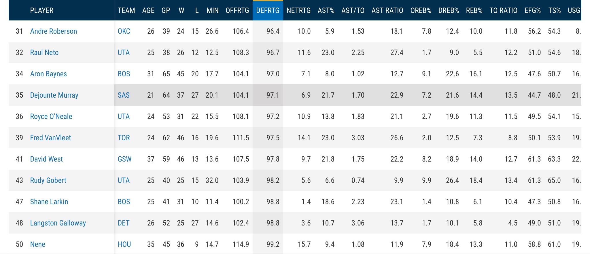 Con toda razón, las palabras de Billy Donovan no cayeron en saco roto y desde la lesión la racha del equipo es mínimamente superior al 50% de victorias con 11 victorias y 9 derrotas. 20 partidos en los que su ratio defensivo ha pasado de los 103 puntos permitidos hasta los 106’7. Si nos atenemos a las estadísticas, entre los jugadores con más de 30 partidos jugados esta temporada, Andre Roberson es el jugador que menos puntos permite al rival de la liga. Un dato muy relevante que muestra el equilibrio que daba el escolta al potencial ofensivo de Russell Westbrook, Paul George y Carmelo Anthony al otro lado de la pista.