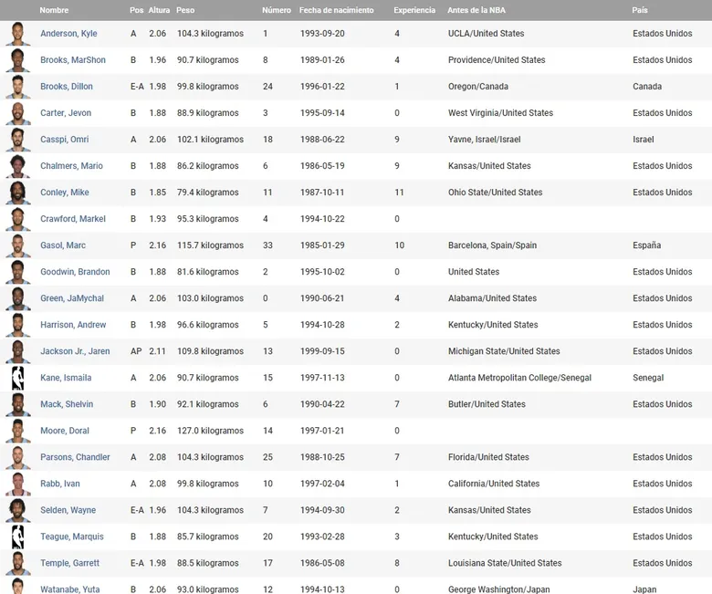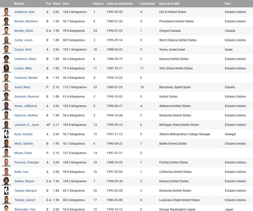 La plantilla de Memphis Grizzlies acumula para la próxima temporada 120.7 M, superando en casi 20 millones el límite salarial, pero sin entrar en el impuesto de lujo (123.7 M$). El punto principal residirá en la renovación de su estrella, Marc Gasol, la próxima campaña. Un contrato de casi 26 millones de dólares, siendo el propio Marc quien tenga la opción de elegir si renovar por una gran cantidad en función de su edad (33 años), o probar nuevas oportunidades en una agencia libre que dudarán si dar un gran contrato a un jugador veterano. La franquicia desea contar con él, y las sensaciones y balance de la próxima campaña pueden determinar la decisión del pívot español.