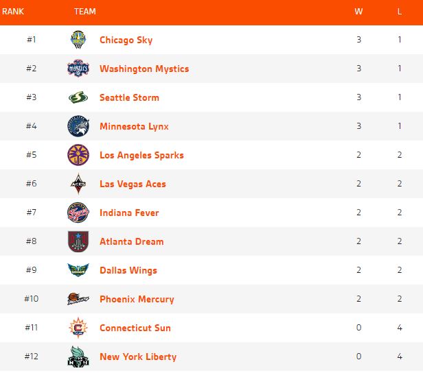 Pero si hablamos de estrellas, Washington va sobrado. Eso sí, no puede contar con dos de ellas: Tina Charles y Elena Delle Donne no han disputado ninguno de los 4 partidos, lo que hace pensar que no jugarán en toda la temporada. La primera está ya descartada por haber recibido la exención médica por parte de la liga, mientras que Delle Donne ha escogido no poner en riesgo su vida. Aun así, su equipo, Wahsington Mystics, van co-líderes con el mismo balance que los demás, 3-1. En este caso, se podría decir que dependen bastante de Ariel Atkins y Aerial Powers. Entre ambas promedian casi 39 puntos, es decir, más del 40% del promedio del equipo. Lo cierto es que ninguna de las dos llegaba con un papel de referentes ofensivas, pero la ausencia de dos pesos pesados ha hecho que tomaran más responsabilidades y, al parecer, no le está yendo mal al equipo en el que también milita Emma Meesseman. Veremos si pueden revalidar el título que cosecharon el año pasado.