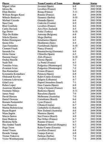 Jóvenes valores europeos que están teniendo un peso importante en sus respectivos equipos, destacando el papel que pueda tener el center del Barça, Nnaji, que tiene muchos números de salir a final de primera ronda. Otro de los prospectos que también se ha presentado es Gael Bonilla, jugador de Capitanes de México de la G League y canterano del club blaugrana. Otros destacados prospectos son Tristan Vukcevic, canterano del Madrid que puso rumbo a Partizán, Ivan Perasovic, Nikola Djurisic o David Okwera.