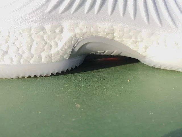 El sistema de amortiguación está complementado por una suela con un buen agarre. No en vano es la misma que ya se utilizaba en las Crazy Explosive 2016. Si algo funciona, ¿para qué tocarlo? Un par de hendiduras en el centro del «ocho» reducen la cantidad de material en contacto con la cancha, pero no limitan en exceso su rendimiento. Hay que decir que esta suela funciona mucho mejor en pistas interiores que en exteriores, donde la abrasión puede acabar rápidamente con ella. Sin una buena capacidad de tracción, el Boost iría a su aire, así que se puede decir que el agarre es bastante correcto y funciona como tiene que funcionar.