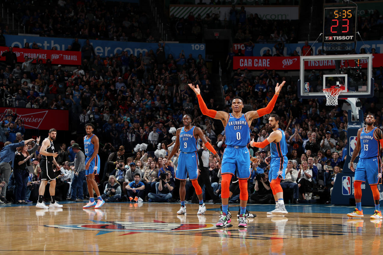 La pareja que han hecho Paul George y Russell Westbrook durante los últimos dos años ha funcionado bastante bien a grandes rasgos. A pesar de que esta temporada el base haya hecho sus peores números en anotación y porcentajes en los últimos cinco cursos, ha lanzado algo menos que el año pasado y no se le ha visto del todo incómodo siendo segunda espada de George. Éste último ha completado la mejor temporada regular de su carrera, siendo finalista tanto para el MVP como para el premio al Mejor Defensor del Año, registrando por el camino sus mejores datos históricos en casi todas las categorías estadísticas.